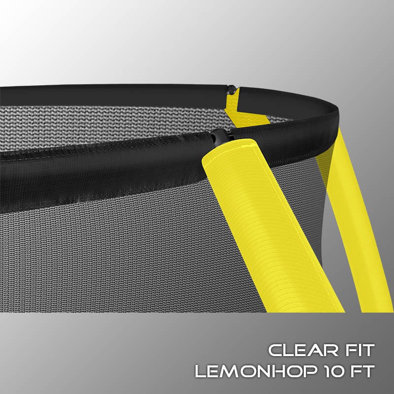 В 2026 году представлена обновленная линейка с улучшенной конструкцией каркаса. Усиление достигнуто за счет использования прочных Т-образных кронштейнов из металла толщиной 1.9 мм. Кроме того, в комплектацию добавлен карман для обуви. Каркасный батут с защитной сеткой Clear Fit серии LemonHop — отличаются комфортом и надежностью. Надежная рама из качественных комплектующих, прочная защитная сеть снабжена прямым креплением к прыжковому полотну и дополнительной защитой входа, наверху каркасное жесткое крепление, сеть не провисает и не слетает во время тренировок. Увлекательный, полезный и безопасный тренажер для всей семьи. Батуты серии LemonHop 10Ft, 12Ft, 14Ft и 16Ft поставляются в оптимальной для комфорта и безопасности комплектации: батут, верхняя защитная сеть, защитный мат, лестница и карман для обуви. Благодаря размеру батута в 10 футов и диаметру прыжковой поверхности 2.62 м он идеально подходит для дачного участка, размеры полотна позволяют комфортно тренироваться взрослым и развлекаться детям любого возраста. Верхняя защитная сеть оберегает от падений, усиленная молния и дополнительная защита входа уберегут малышей от случайного входа или падения. Надежный каркас из оцинкованной стали, качественные комплектующие и погодостойкие гальванизированные метизы рамы делают батут безопасным, устойчивым, надежным, гарантируют полную защиту от коррозии и долгий срок службы. Максимальный вес пользователя батута LemonHop 10Ft — до 170 кг.