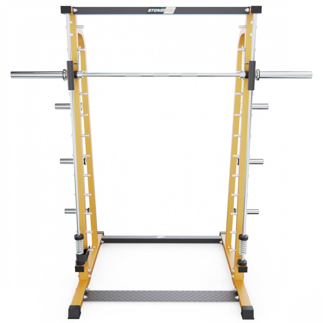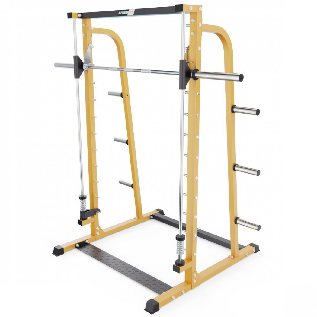 Каркас изготовлен из прочной стали с профилем 70 х 50 х2 мм, что гарантирует устойчивость и долговечность конструкции. Машина оснащена встроенным грифом длиной180 смс посадочным диаметром50 мми максимальной нагрузкой до300 кг. Для хранения дисков предусмотрено 6 посадочных мест диаметром50 мм, каждое из которых выдерживает нагрузку до150 кг.