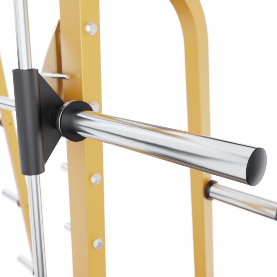 Тренажер имеет 9 уровней регулировки по высоте, что позволяет гибко настраивать рабочее положение под разные упражнения и рост спортсмена. Для дополнительных тренировок предусмотрен турник длиной88 смс максимальной нагрузкой до200 кг.