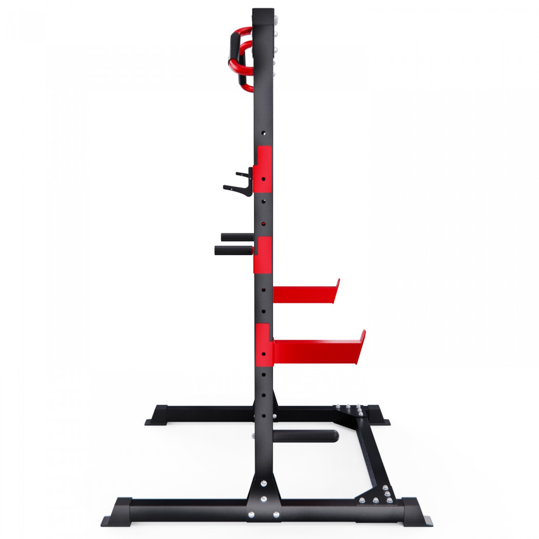 Устойчивое основание стойки для приседаний из высокопрочной профильной трубы 50 х 75 х1,5 ммвыдерживает нагрузку200 кг. Подходит для выполнения полного спектра упражнений со штангой: от приседаний и становой тяги до жима лежа. Нескользящие рукоятки для подтягиваний диаметром25 мми пара поручней для отжиманий помогут дополнительно разнообразить ваши тренировки.